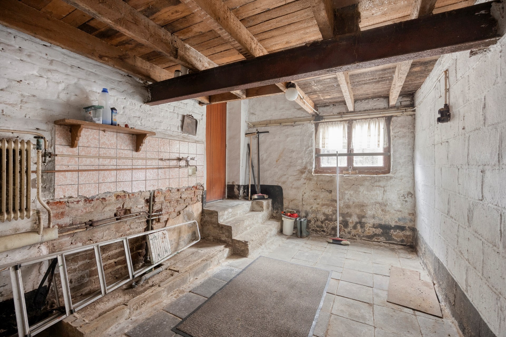 Het oorspronkelijke woonhuis is volledig onderkelderd. De ruime gewelfde kelder, inclusief voormalige stookkelder, beschikt over: