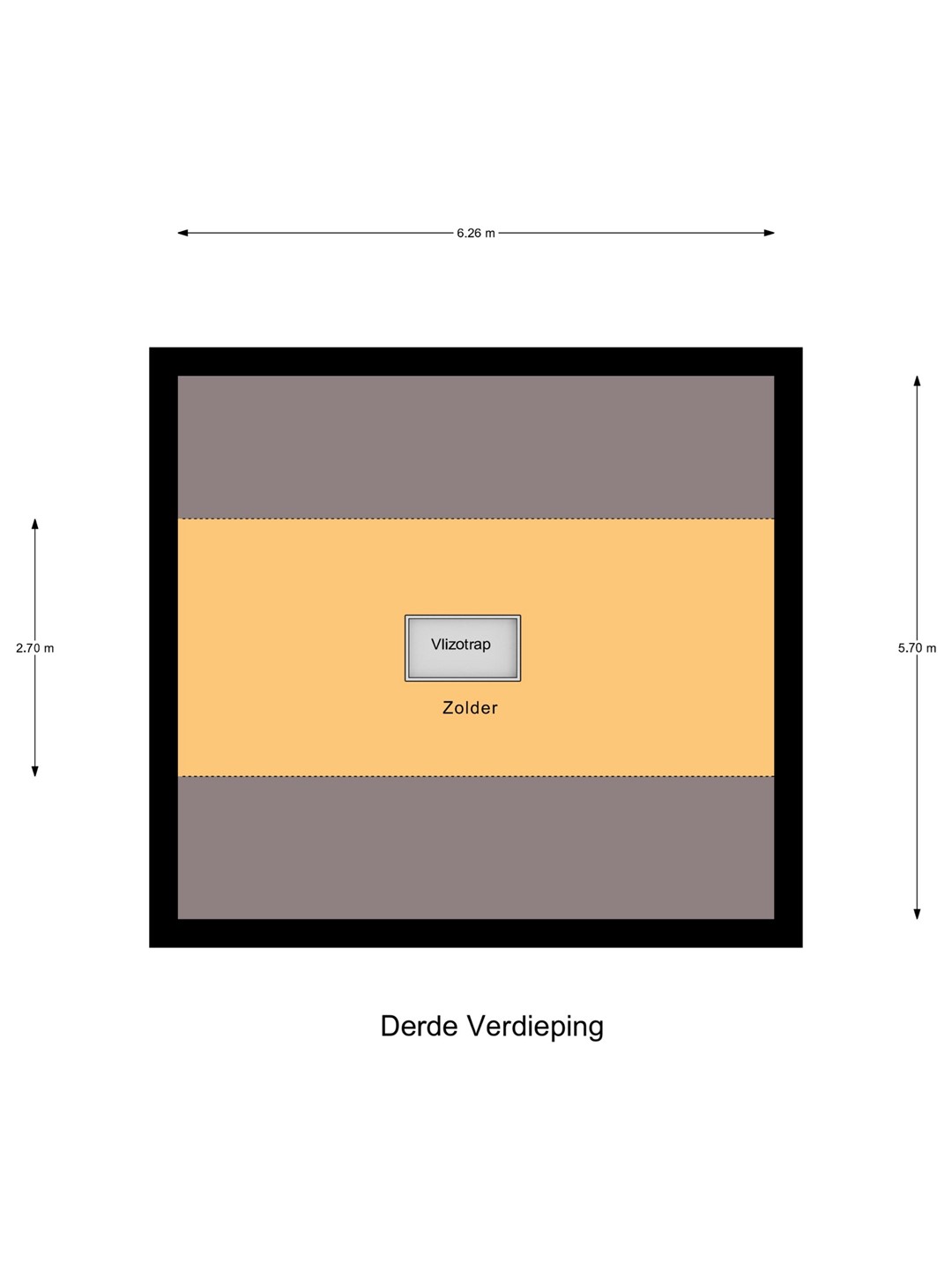 Via een vlizotrap is de derde verdieping bereikbaar. De hoogte van de zolder is ca. 2.70m.