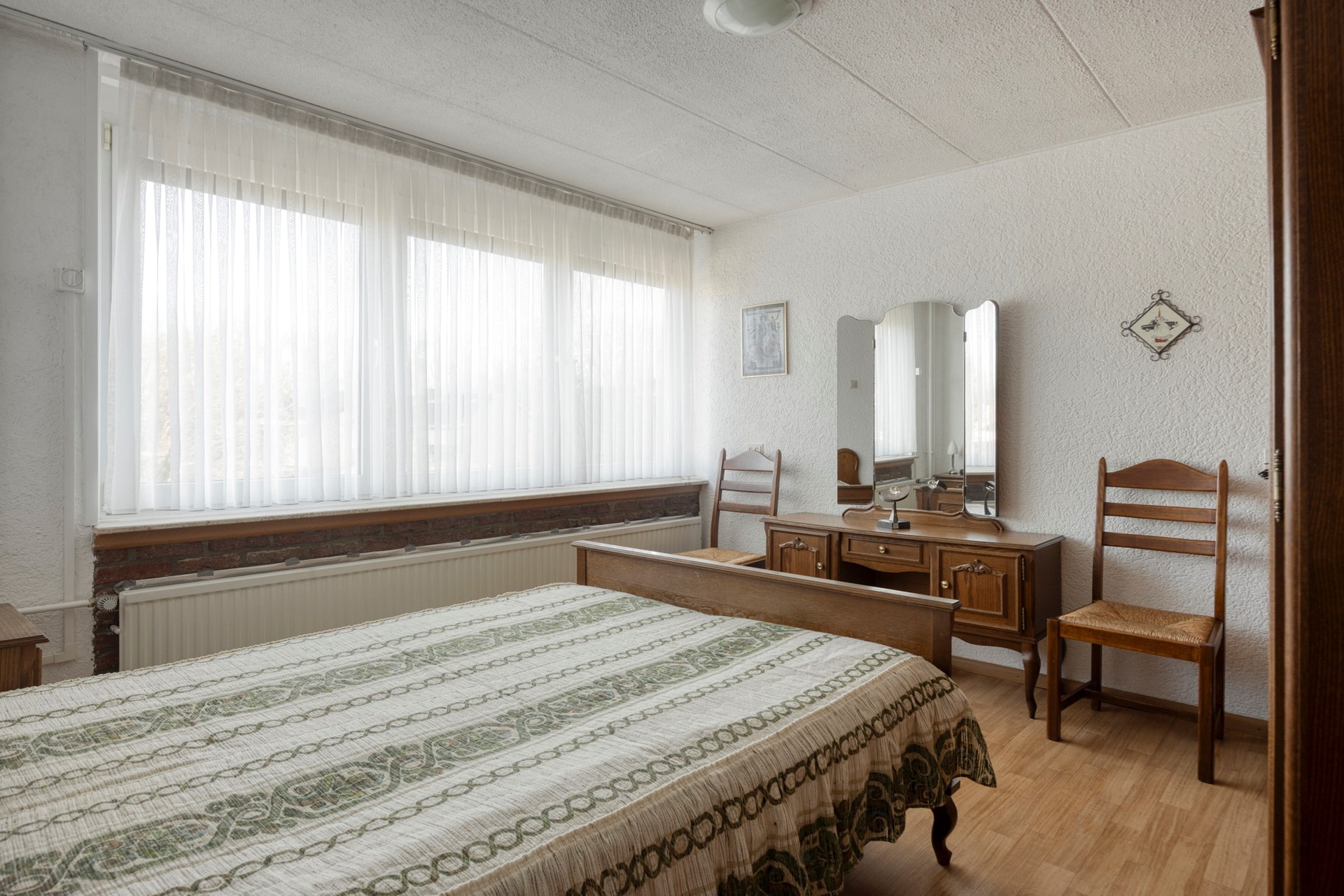Binnen word je verrast door de lichte T-vormige woonkamer, waar grote raampartijen zorgen voor een prettige lichtinval. De woning vormt een fijne basis die je stap voor stap naar eigen smaak kunt moderniseren en personaliseren.